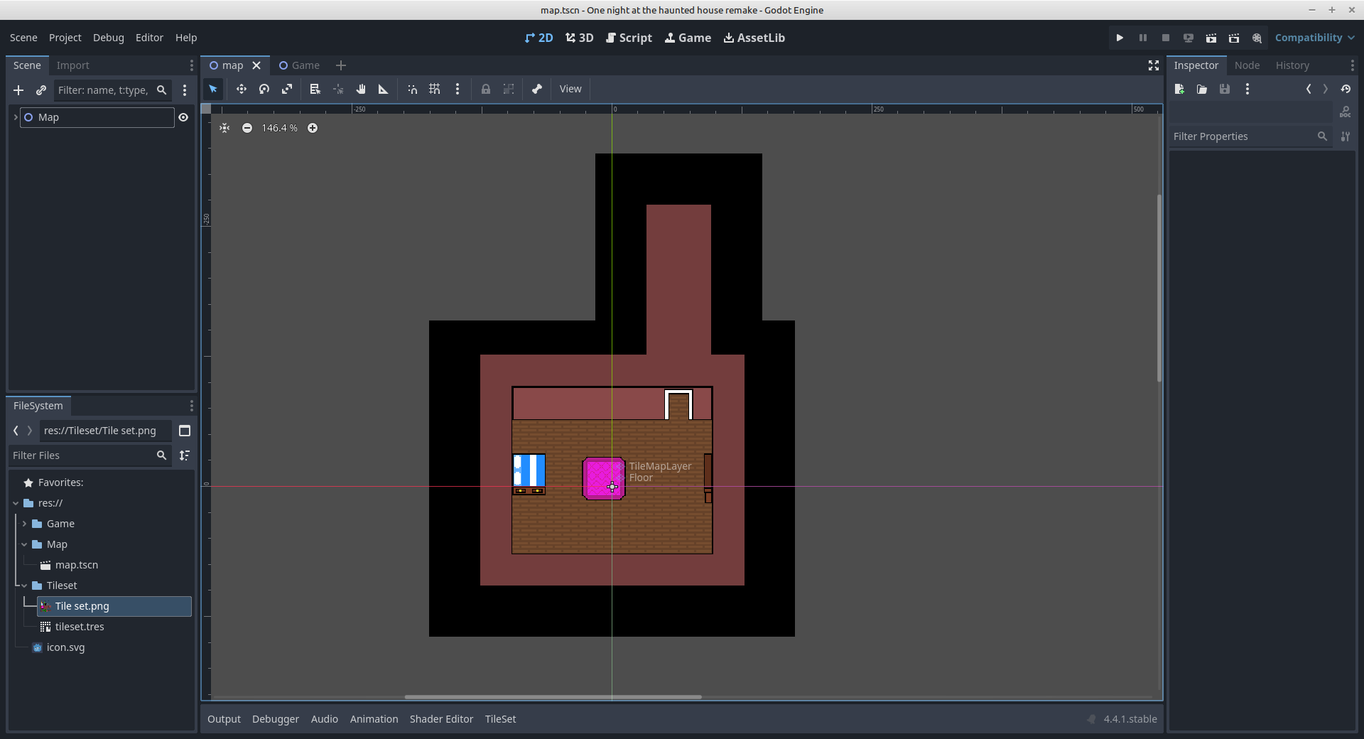 This is map that the game will be using. The map was made with premade tile set that I made a year or two after the original game was released on scratch mostly because the last time I did this, I moved on to other projects and it was also to learn the Godot game engine.